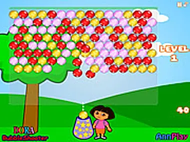 Dora is in troubles and needs your help. Bubbles are falling from sky and she needs to burst them.