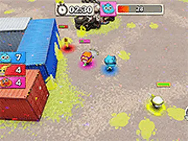 Pregătește-te pentru o rundă incitantă de „Gumball Paintball”, un joc virtual de paintball. Alege-ți personajul: Începe prin a-ți alege numele de joc și alege dintre trei personaje principale: Gumball, Darwin și Anais. Participă la meciuri de paintball rapide, unde scopul este să depășești tactic și să elimini cu tir ceilalți jucători. Fii atent la bara ta de sănătate; dacă se epuizează după ce ești lovit de gloanțe de vopsea, ești eliminat din joc. Obiectivul tău este să elimini toți ceilalți jucători și să ieși învingător. Câștigă puncte XP prin joc, care pot fi folosite în meniul principal pentru a cumpăra îmbunătățiri pentru armele și uneltele tale. Ai, de asemenea, opțiunea de a personaliza aspectul personajului tău în magazin. Distrează-te jucând acest joc aici pe Y8.com!