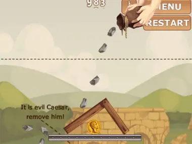 Plasează obiecte în scenă pentru a proteja moneda romană de o ploaie de pietricele. Nu lăsa moneda să fie lovită de pietre sau să cadă pe pământ. Toate elementele din Hide Caesar II revin, inclusiv frânghiile și pivoții, precum și monedele Cezar cel Rău, de care trebuie să scapi pentru a trece de nivel.