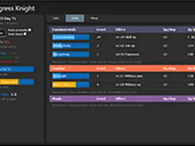 Progress Knight - joc inactiv medieval cu multe îmbunătățiri, devii cavaler și lucrezi la diferite slujbe. Începi ca un cerșetor, abia reușind să te hrănești pe măsură ce trec zilele. Cu toate acestea, de-a lungul anilor înveți noi abilități. Cumpără obiecte noi pentru a-ți accelera progresul. Să ai un joc plăcut.