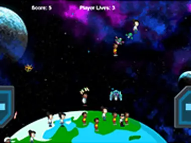 Salvează de extratereștri - Joc spațial distractiv cu invadatori spațiali și Pământul. Trage în inamici și salvează-ți oamenii. Pământul este atacat de extratereștri din spațiul cosmic și trebuie să protejezi Pământul. Joacă acest joc mobil pe orice dispozitiv la Y8 și distrează-te.