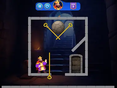 Scopul principal este să salvezi regele rezolvând corect fiecare puzzle. Trage știfturile în secvența corectă pentru a evita capcanele și a supraviețui.