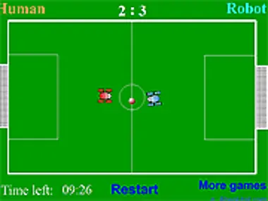 Click your mouse to move the robot towards the soccer ball most points scored on goal wins.