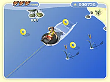 Armed with your cowboy hat, you will have to collect as many points as possible, represented in the form of Texas stars. You won't control the cowboy in the buoy, but rather the boat pulling it, so you'll have to react quickly so that it can follow your gestures.