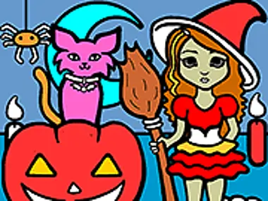 A coloring page to celebrate Halloween. Don't be to scared to be coloring it. It is only a small witch and the evil spider won't bite.